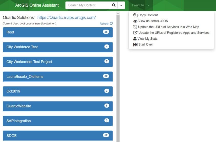 The County of San Diego recently upgraded to a full ArcGIS Enterprise environment, and since then, the number of users accessing the Portal has increased. Users are creating maps, applications, and dashboards. They’re now interested in reorganizing and moving some of the content previously stored on their internet ArcGIS Online site to the new intranet ArcGIS Portal site. Quartic staff and the County of San Diego GIS Analyst are tasked with this effort. When planning the migration, administrators identified the tasks required and identified out-of-the-box tools that could be used to make moving the content easier.