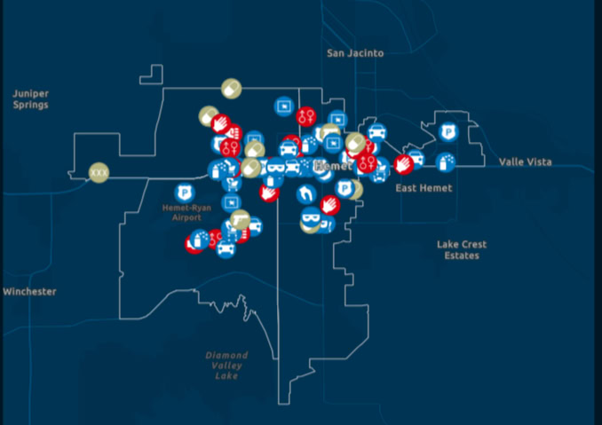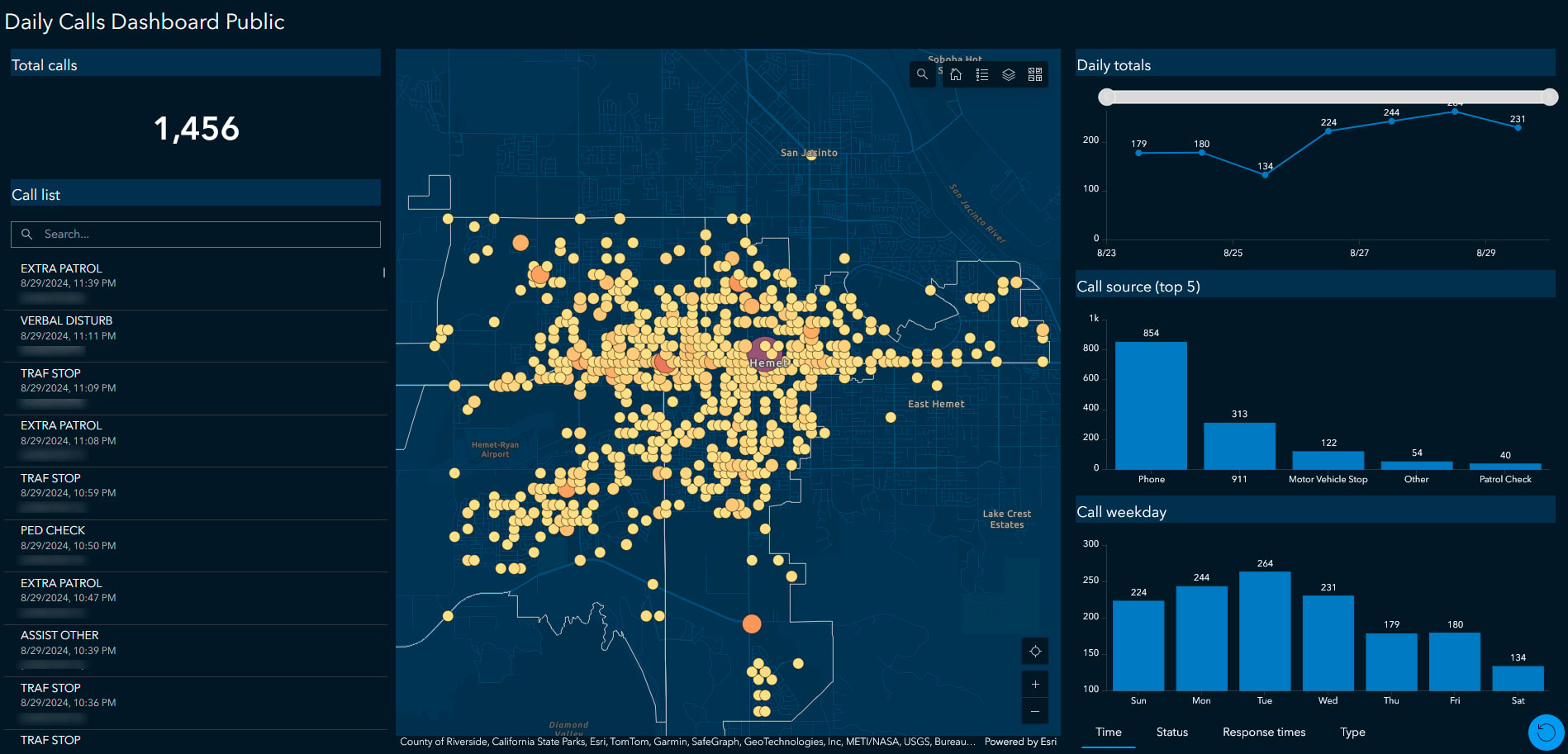 Quartic deployed a suite of GIS dashboards, using several of Esri’s ArcGIS Solutions for law enforcement as their base. Quartic configured the dashboards and ArcGIS Solutions to precisely meet Hemet PD’s operational needs.