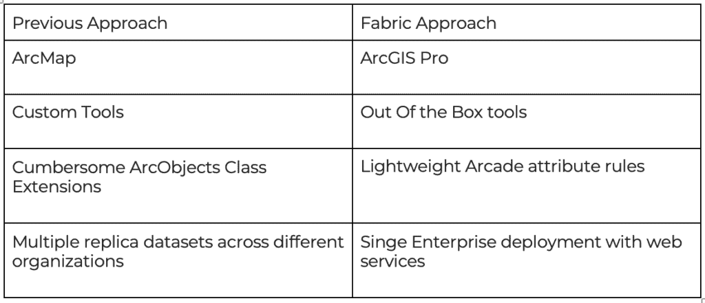 The Parcel Fabric and the required web feature service allowed the smooth migration of this legacy code and workflows to a more modern service-based architecture. The Esri Parcel Fabric is designed to handle many data quality control issues that were previously implemented through custom programs such as ArcObjects tools and class extensions. Maintaining the tax parcel history and external organization updates are a core part of the Parcel Fabric product, simplifying the upgrade tasks.